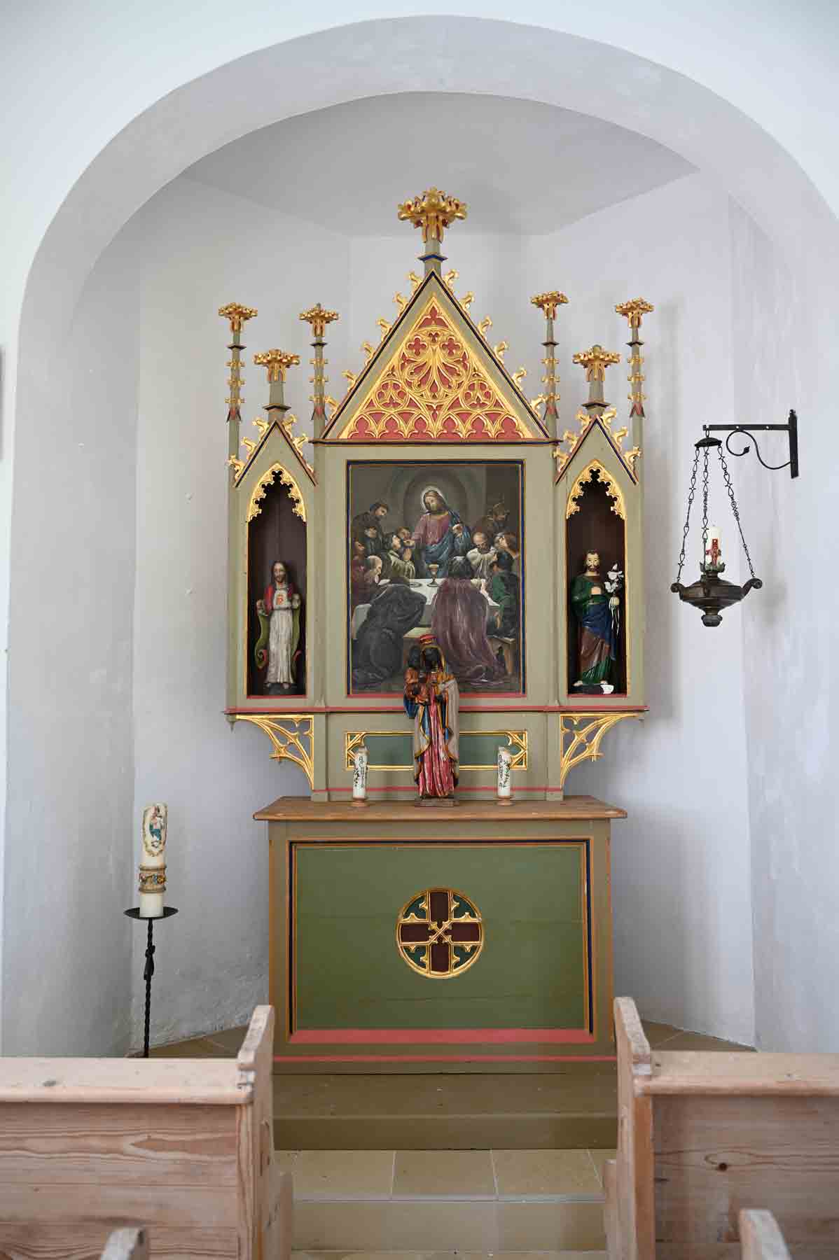 Die malerische Dorfkapelle befindet sich idyllisch am Ortsrand, an einer Weggabelung gelegen. Traditionell wurde alle zwei Jahre eine Familie des Ortes dazu verpflichtet, die Pflege und Instandhaltung dieser wunderschönen Kapelle zu übernehmen, angefangen vom Reinigen bis zum Streichen. Nach einigen Unstimmigkeiten, die bei einem Hofverkauf hergingen, hat sich schließlich Fam. Reitberger dazu bereit erklärt, diese Verantwortung dauerhaft zu übernehmen.